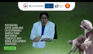 On May 16, 2025, the ASEAN Secretariat’s Senior Officials Meeting on Rural Development and Poverty Eradication (SOMRDPE), the Philippine’s National Anti-Poverty Commission (NAPC), AsiaDHRRA, the Asian Development Bank Institute (ADBI), and Resilience Development Initiative (RDI) co-organized the first webinar on Rural Development and Poverty Eradication (RDPE) in ASEAN. Joined by over 100 participants from the government sector, civil society organizations, private sector, research and financing institutions, the event aimed to enhance the understanding of ASEAN Guidelines on Responsible Agricultural Investment (AGRAI) principles and its implementation status, gain practical insights from the experts and draw actionable recommendations promoting AGRAI.