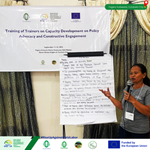 AsiaDHRRA concluded the first batch of “Training of Trainers on Capacity Development on Policy Advocacy and Constructive Engagement” on 11-13 September 2024 in Cotabato City, supporting its initiative to eliminate child labor in agriculture, the RISE-UP Project. The workshop was participated by rural people’s organizations (RPOs), Fagayugoy de Melitedted Libun deb Kuya (FAMELIK), and indigenous women leaders (Fintailan) from Barangay Kuya and Romongaon in South Upi, Maguindanao del Sur.